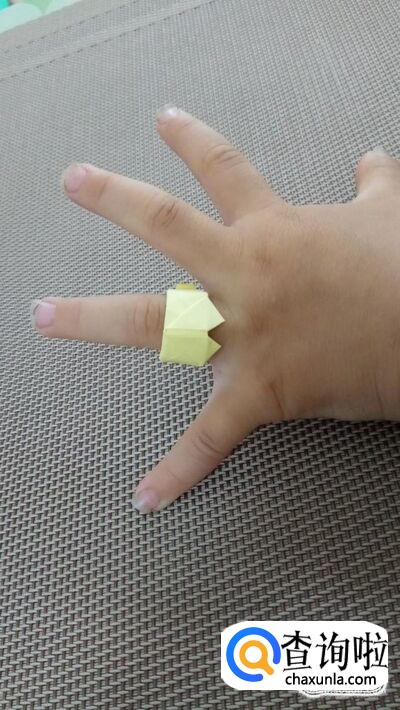 将纸从下往上折叠,到如图所示的位置,比着手指,量出长短,粘好,就可以了。