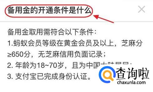 不过如果有些小伙伴按照此流程依旧没能找到备用金,那就说明系统没给我们开通,需要符合下图所示的条件才有机会给开通的:蚂蚁会员等级黄金及以上、芝麻分≥650分、年龄18-70岁、已完成身份认证,这三个条件缺一不可,如果都满足了还是没有给开通,那就只能等待了,毕竟这项服务目前仍处于逐步开放阶段;
