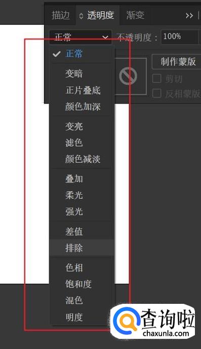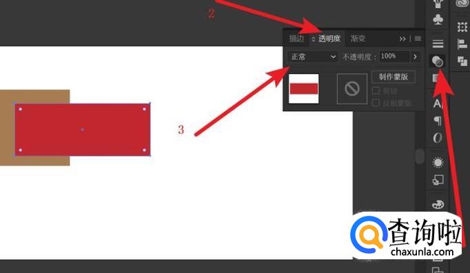 在右侧工具栏中,找到透明度的面板,然后选择写有正常的选择框。