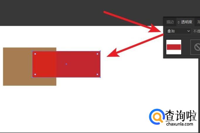选用叠加后,可以看到左侧的两个矩形重叠部分,已经开始变色。