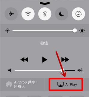 苹果手机:连接WIFI,从手机屏幕的最底端向上滑动;点击airplay。