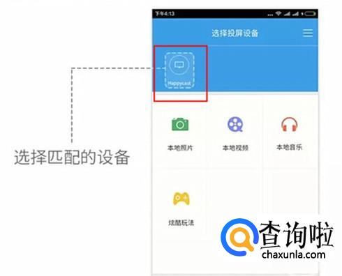 打开手机上的乐播投屏,选择电视设备,进行匹配。