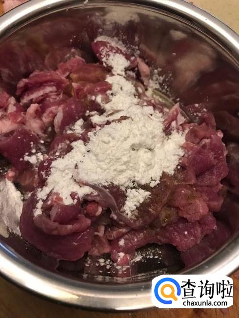 然后把准备好的姜切成细末放入容器中,再加入盐、生抽、淀粉给羊肉做一个”按摩“,让羊肉尽可能地吸收调料的味道。