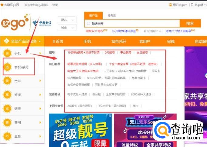 在左侧栏选中“套餐靓号”,在其中选中满意适用的套餐。