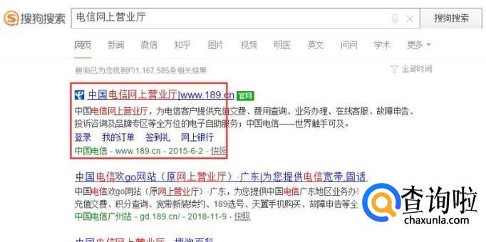 通过搜索工具检索某网上营业厅,在搜索结果中选中其官网,点击进入。