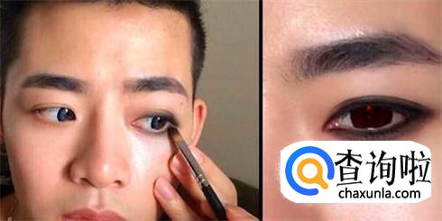 对男生来说,眼线笔和眼影只要黑色就可以了,其他颜色一概不要。画好眼线之后,用黑色的眼影稍微的扫一下,让眼线不是那么的明显且很自然就可以。