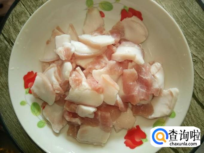 取一块五花肉,将五花肉洗净,切成薄片;五花肉可以肥一点,这样可以多炸出一点油;炒大白菜用肥油炒,会很香哦;