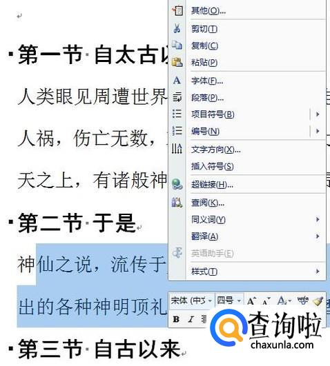我们看看取消锁定后的效果,选中局部文字,右键点击,就发现可以编辑了。