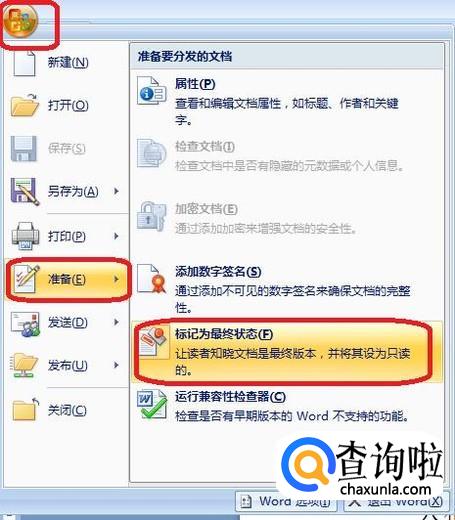 其实这是文档被锁定了,只要取消锁定就可以编辑,点击左上角“OFFICE按钮”,点击“准备”,然后在扩展菜单中点击“标记为最终状态”,就可以取消锁定。