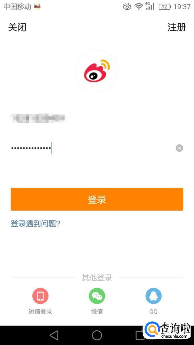 点击微博app进入登录界面,输入账号和密码登录即可。
