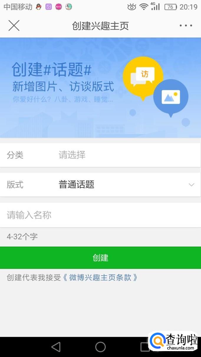 写入自己想写的话题后,点击创建就完成了。