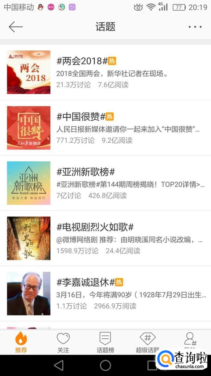 然后进入了发现页面,在页面中偏下的位置,点击热门超级话题即可。