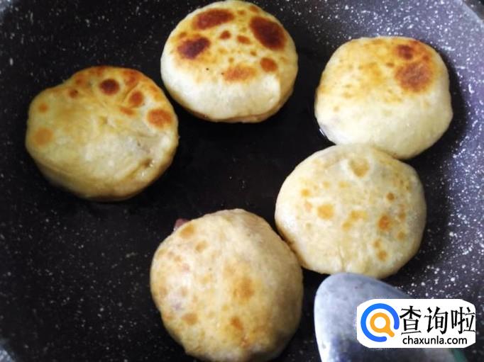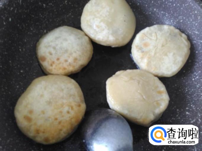 煎得3分钟左右,把饼翻转再煎,然后每隔1分钟翻转一次,连续翻转6次左右就可以了。