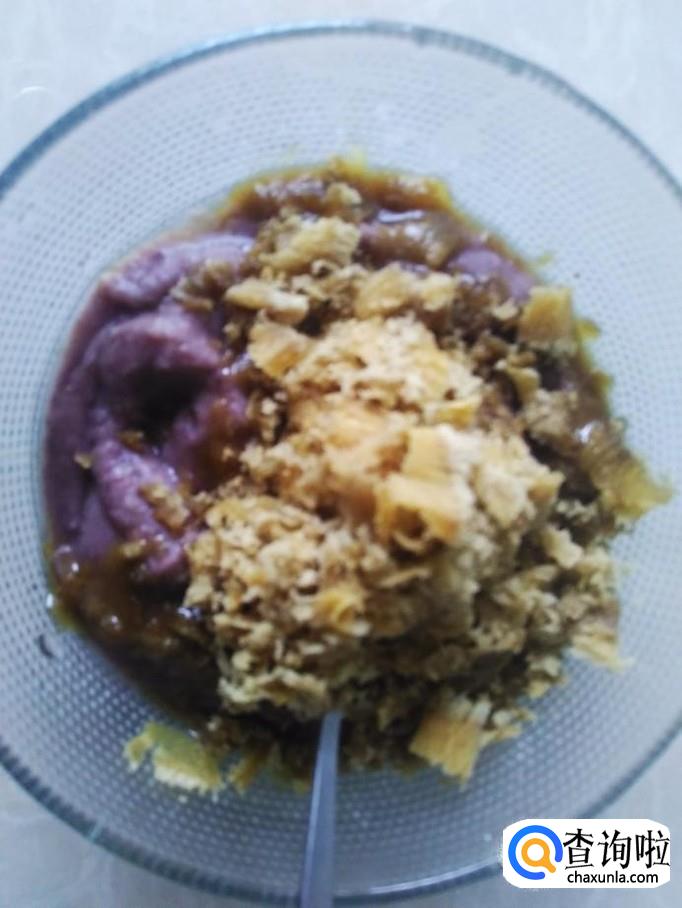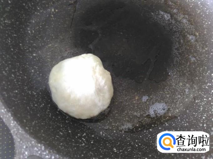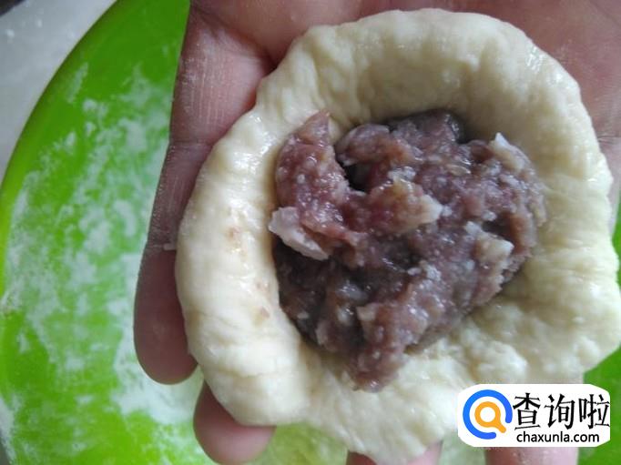 用手抓适量的面团压成小饼,把豆沙放到中间然后收口。