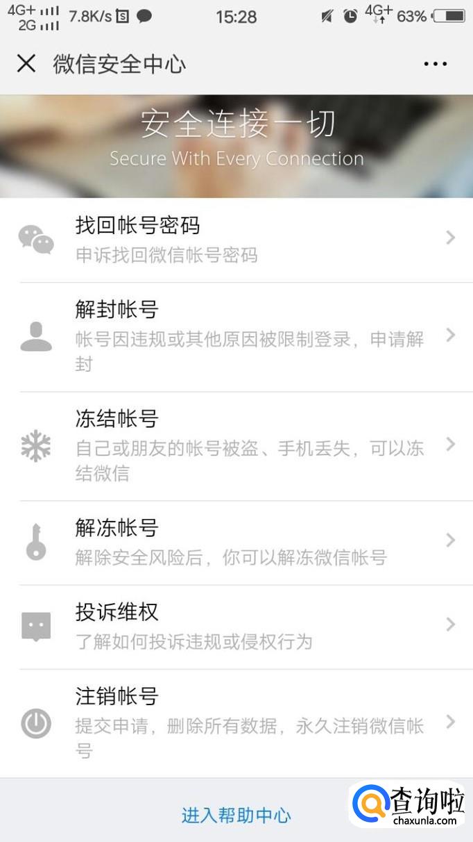 紧接着,点击账号与安全,再点击最底端的微信安全中心。