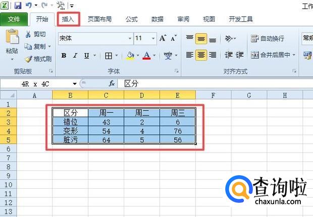 之后我们选中这些数据的单元格,然后我们点击工具栏中的插入;