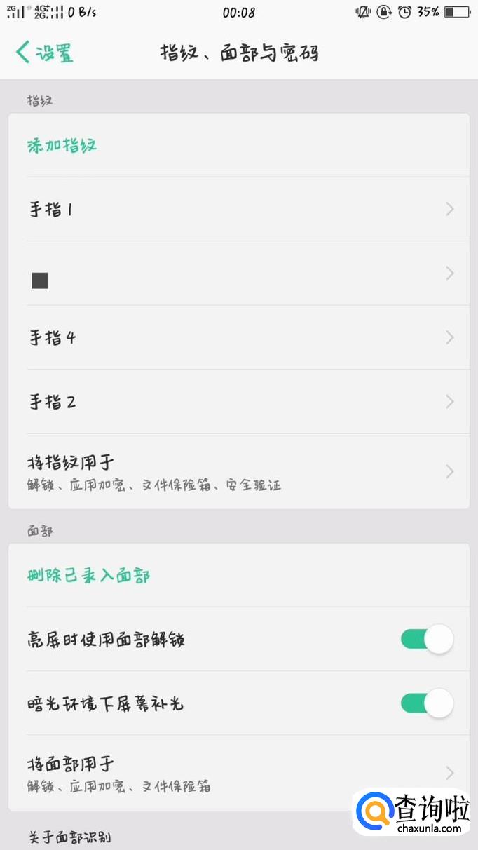 面部识别,这是oppo手机系统更新后的新增解锁方式,通过对面部展开识别来进行第一次解锁。