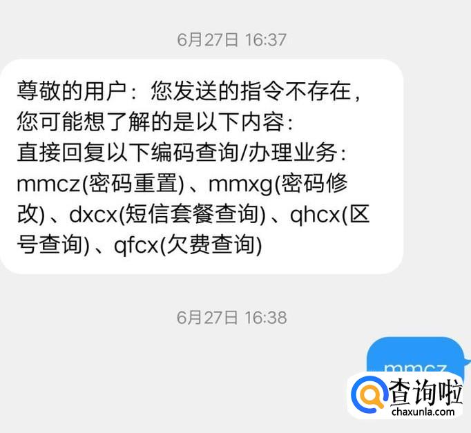 在短信中向“10001”发送指令“mmcz”即密码重置。