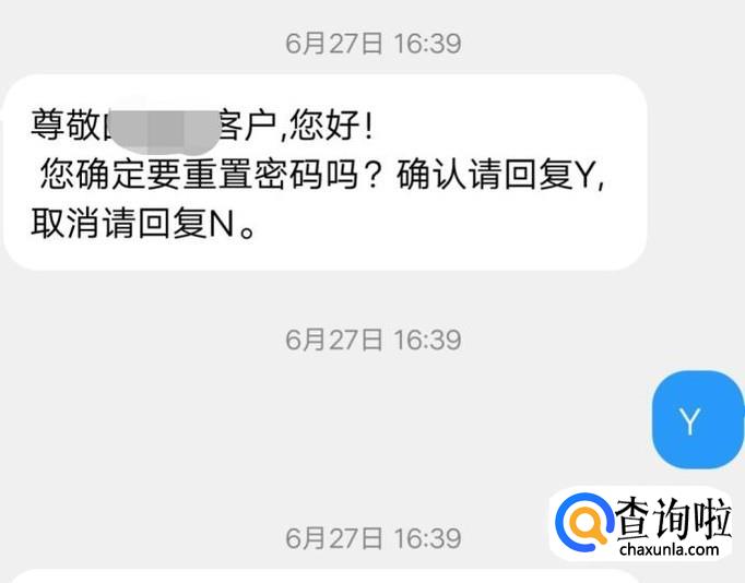 确定重置密码回复“Y”