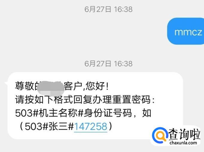 然后等待短信回复,按提示回复503#姓名#身份证号。