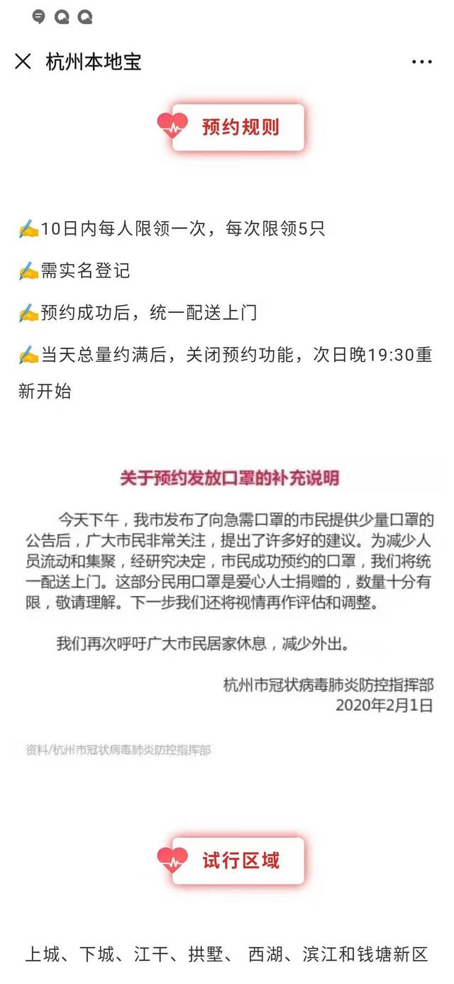 5. 滁州:购买一次性医用口罩一律改为线上预约方式,通过“高济百姓缘大药房”微信号预约。请市民不要再到药店排队购买。