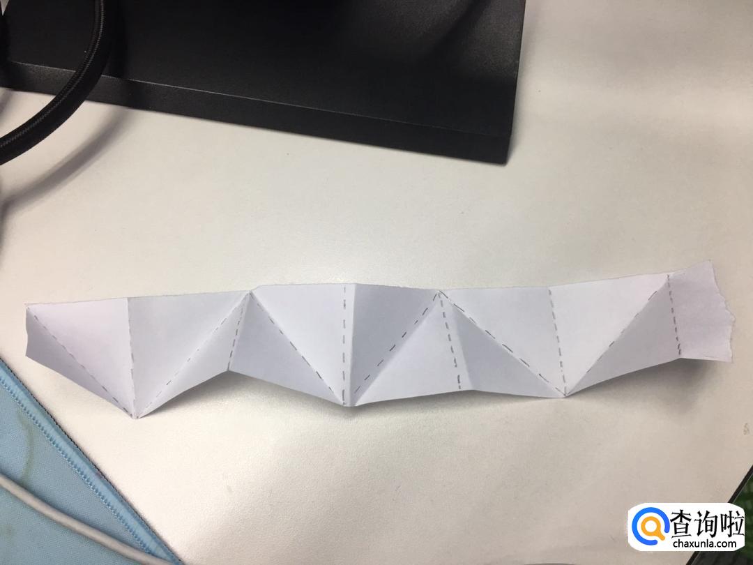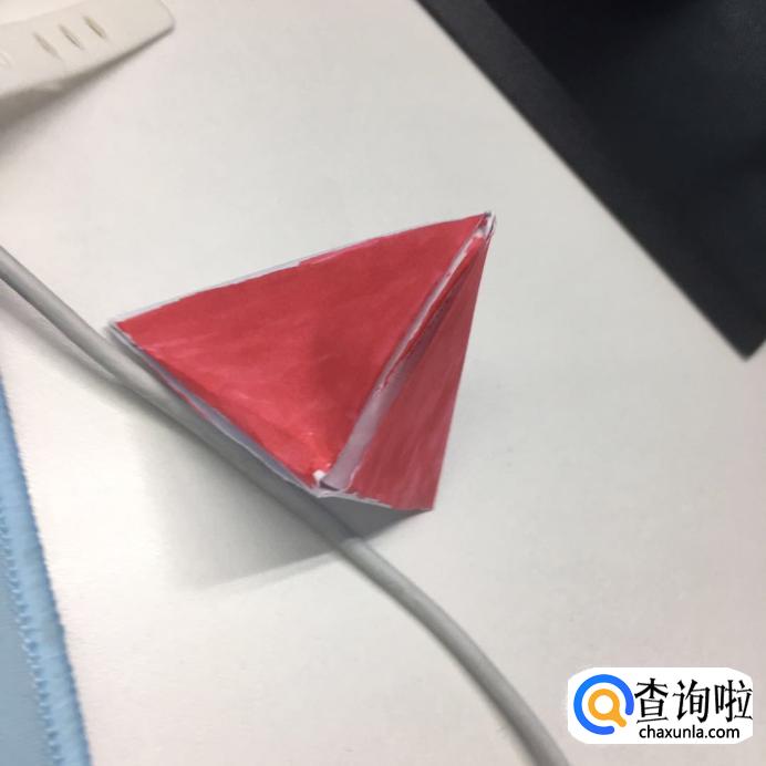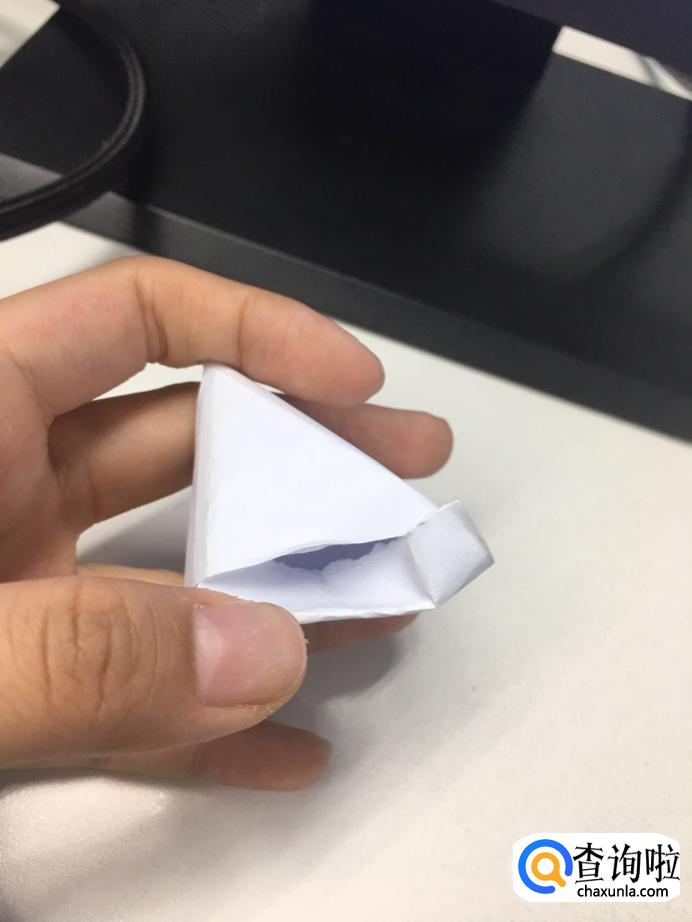 按照印记,向一个方向把一个个三角卷起来,最后剩余的尾巴,塞进折好的“粽子”里。