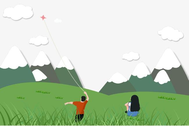 5、堤坝上有人在放风筝,天空在享受春天的快乐。