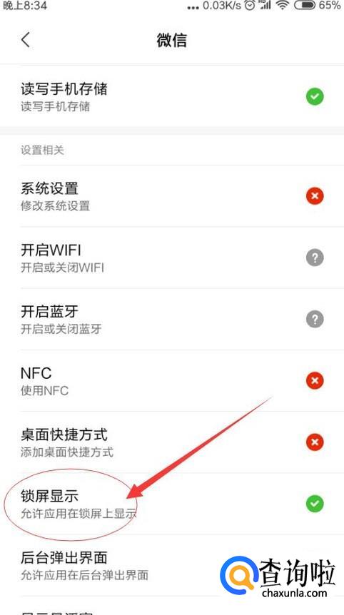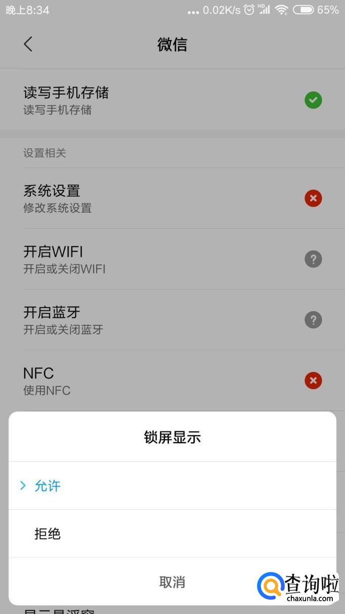 点击锁屏显示后,弹出允许或者拒绝的页面,选择允许,这样,即使在息屏的时候也可以接收微信消息了