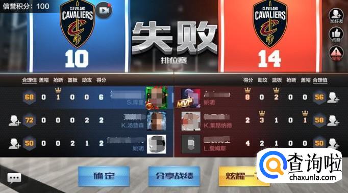 最后就是个人球员的评价,会知道自己使用的球员是哪位,什么等级的,你获得的评价是什么等级,你账号等级多少,获得的奖励是什么等,点击确定后一场排位赛就真正结束了。