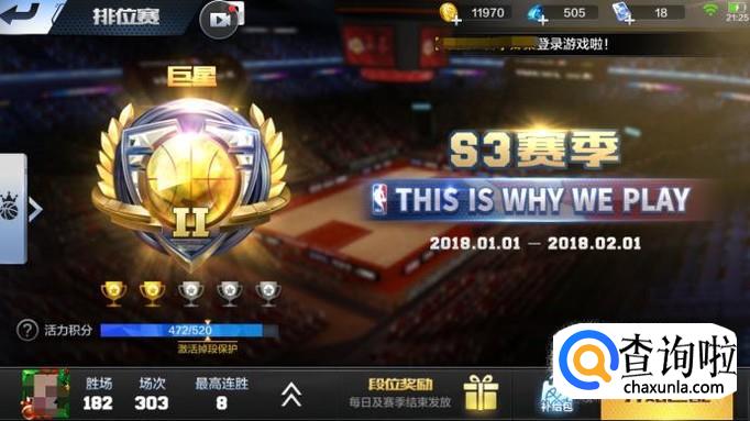 页面跳转到排位页面,这里会显示游戏是第几赛季了,还有段位奖励,当前段位,胜率等等信息,点击开始匹配。