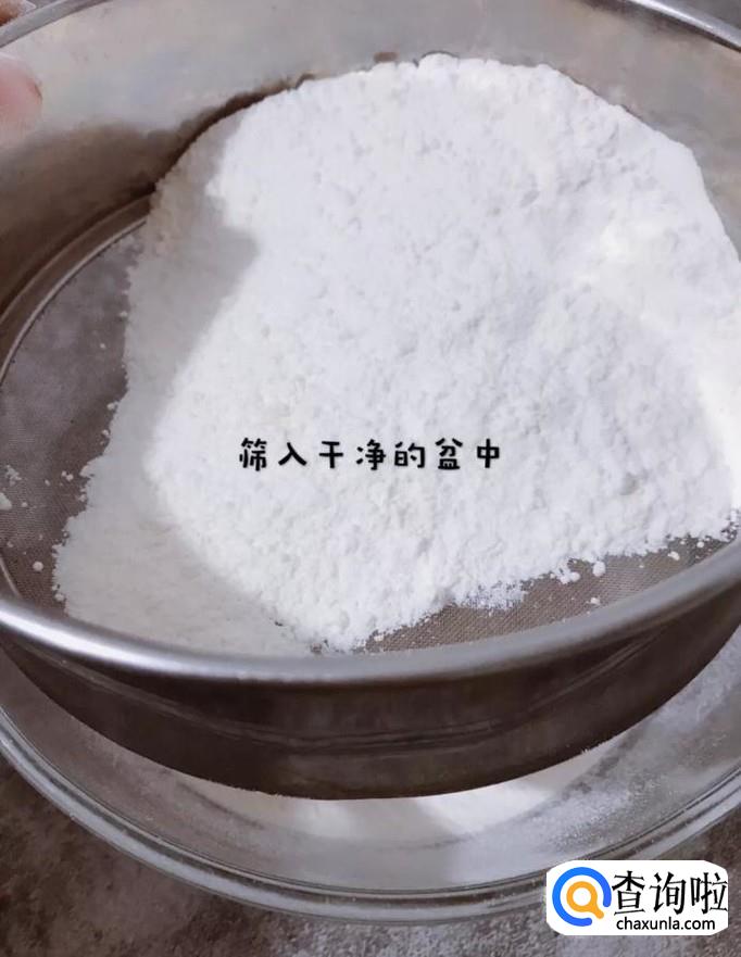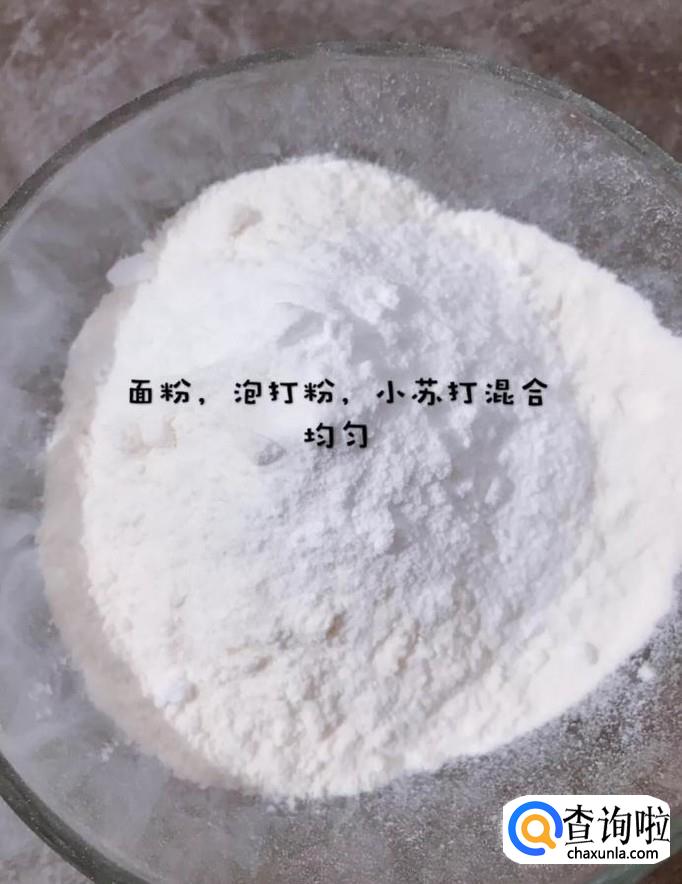 然后将面粉,泡打粉,小苏打粉用另外一个碗混合均匀,如下图所示。
