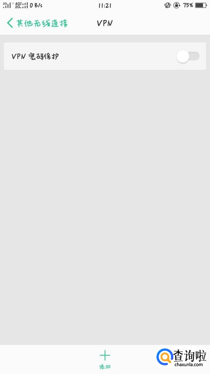 进入VPN设置过后,点击下方的添加,才能添加想要的VPN地址。