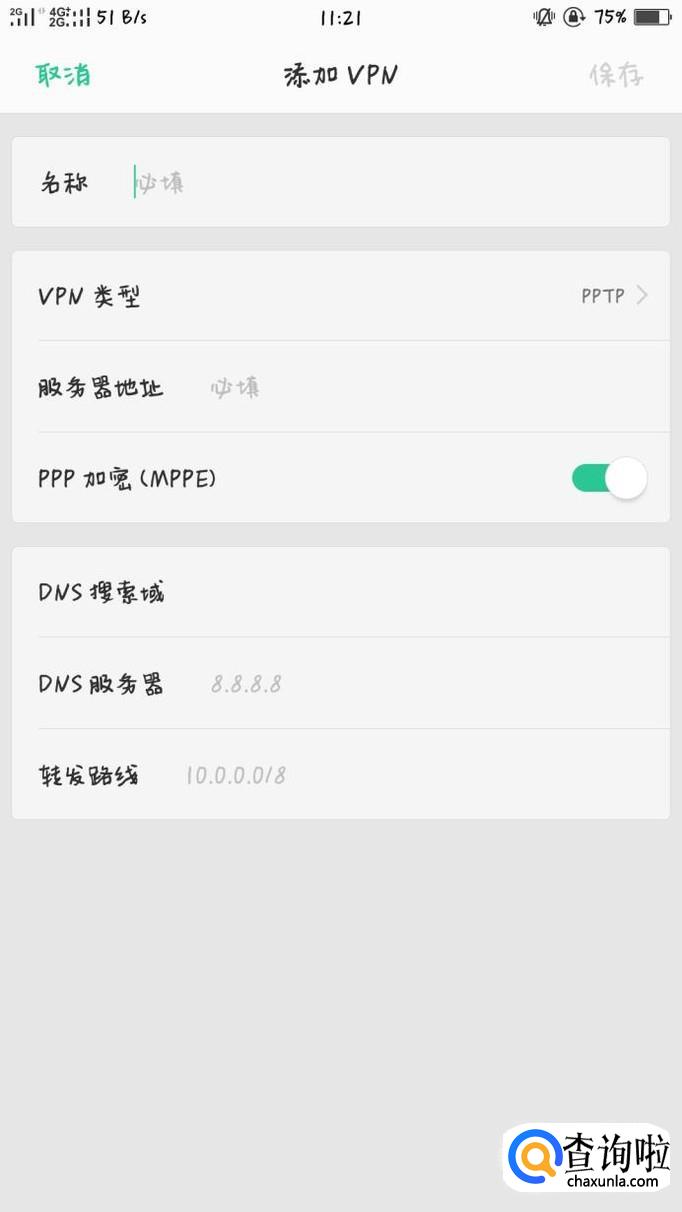 在添加VPN地址时,需要输入许多相关的内容,输入完成后,即可完成添加。