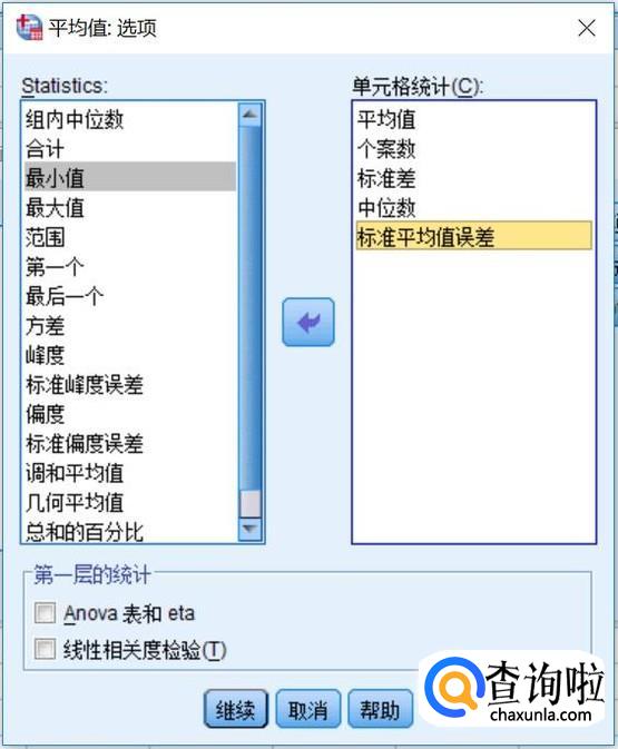 点击“选项”,在选项对话框里选入需要的变量,点击继续,在主对话框中点击”确定。