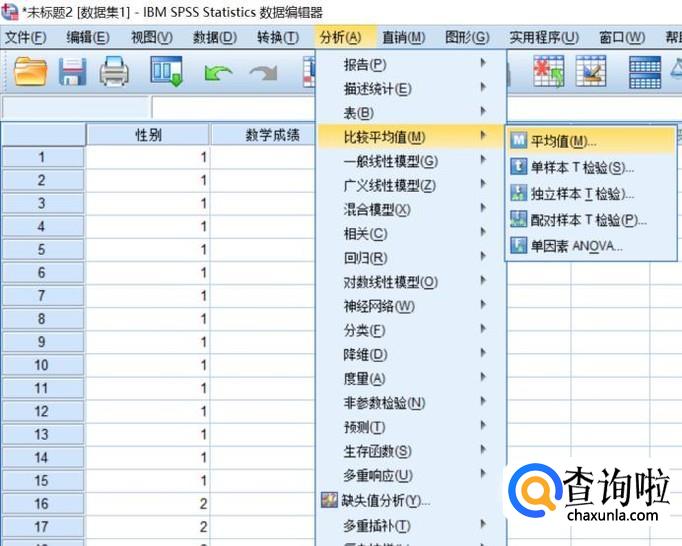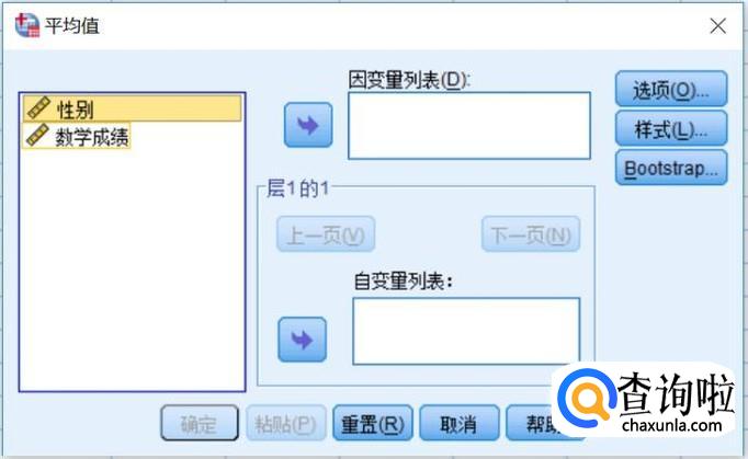 依次点击“分析”--“比较平均值”--“平均值”,弹出平均值对话框。
