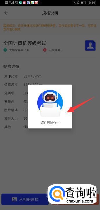 拍摄完毕之后,页面会出现证件照制作中的提示,稍微一下。