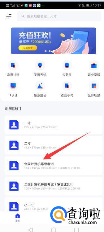 打开智能证件照APP,在首页选择“全国计算机等级考试”。