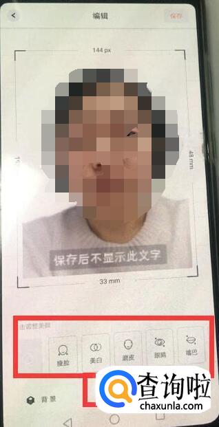 如果你对拍摄的照片不满意,你还可以选择“美颜”功能,修饰下面部瑕疵。