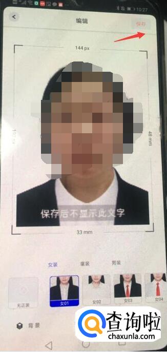 证件照生成后,会出现常规的红色、蓝色、白色底色的证件照片,可以根据要求选择背景色,这里我们就用默认的白色。