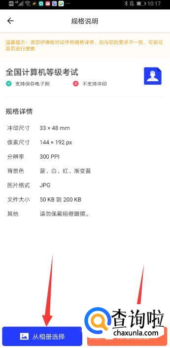 可以选择从手机相册里调出照片,也可以选择用相机拍摄,这里我们选择用相机拍摄。