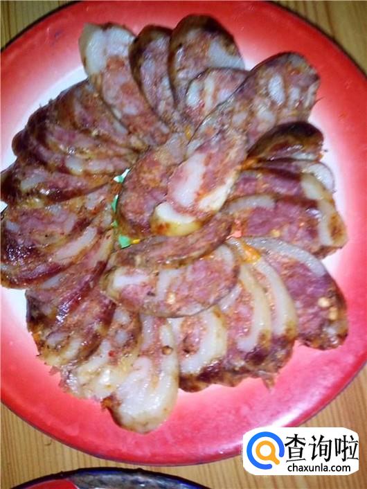 香肠也是必不可少的一个菜,每家每户做的香肠味道都不一样,有点偏麻,有点偏辣,也有点太咸,有的还很肥。反正小编是不太爱吃冷香肠的,香肠要刚捞出锅的时候最好吃,用菜刀直接割一截,特别满足。