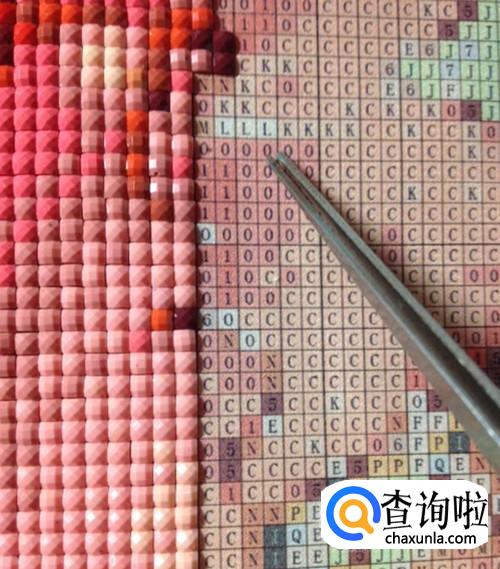 接下来就是点钻,用镊子将钻石摁在画布对应的位置上,每贴完一块区域就重复上述操作,只要我们别搞错画布上对应的钻石编号,那么我们很快就可以完成一幅钻石画了。