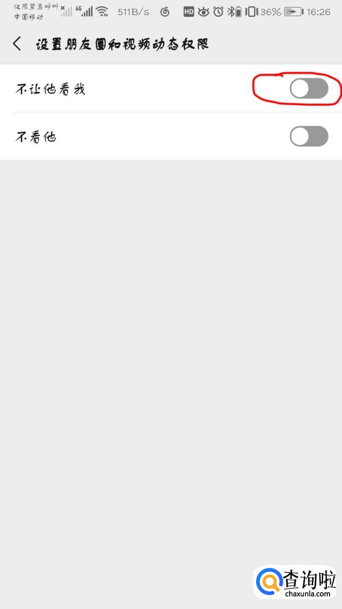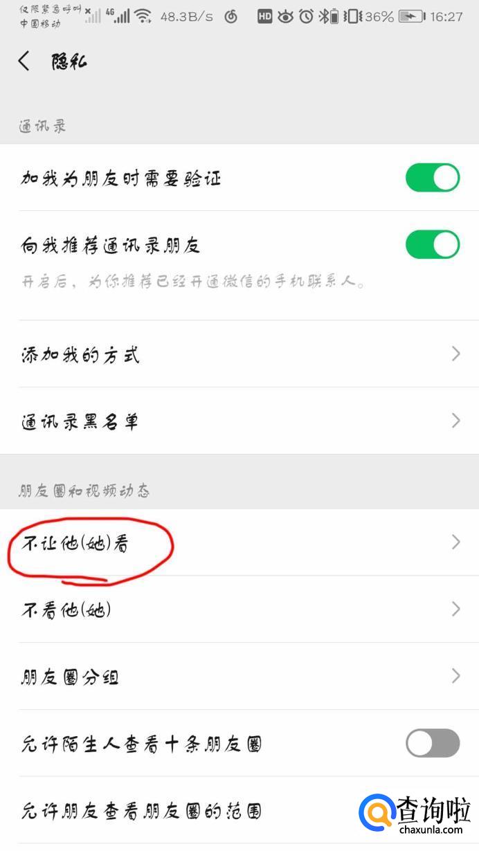 点击“不让他看”。就可以看到谁被我屏蔽了。