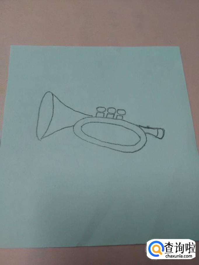 在喇叭左侧,画一个椭圆形,表示喇叭口,小号就画完了。