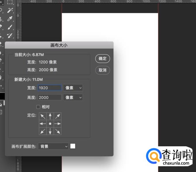 接着打开画布大小,取消“相对”,将宽度调整为1920px。