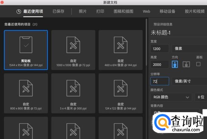 打开电脑中的Photoshop界面,我们先创建一个宽度为1200,高度任意,分辨率为72的画布。