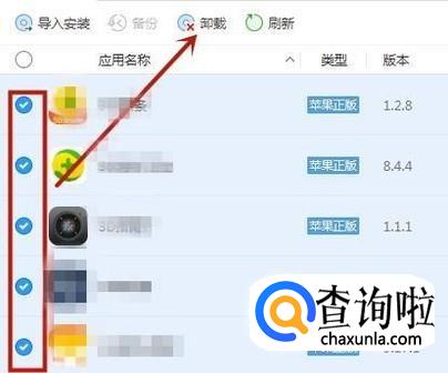 然后勾选我们要删除的几个软件并点击卸载,如下图所示。