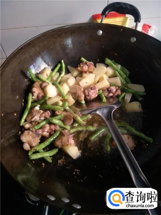 将入土豆,再翻炒一会,让土豆受油均匀后向加入适量的清水,再加适量的盐、酱油、陈醋。然后盖上锅盖煮,不时的检查一下锅中情况,直到水烧得快要干时就不断翻炒,直到将水彻底烧开。