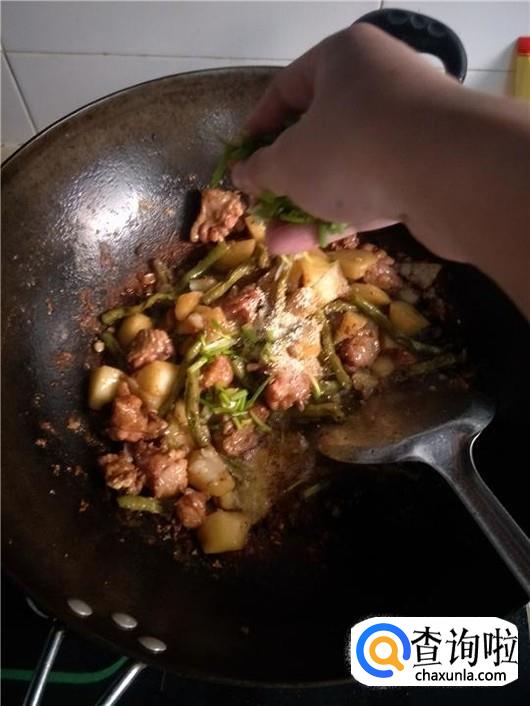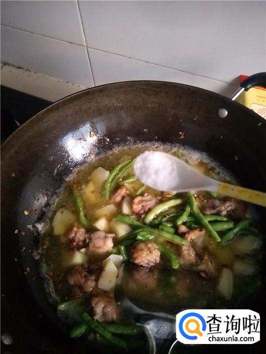 待水烧干后即可停火,然后加入适量的鸡精用来提味,还可以洒上少量的葱花做点缀,这样美味的土豆烧鸡翅就完成拉。