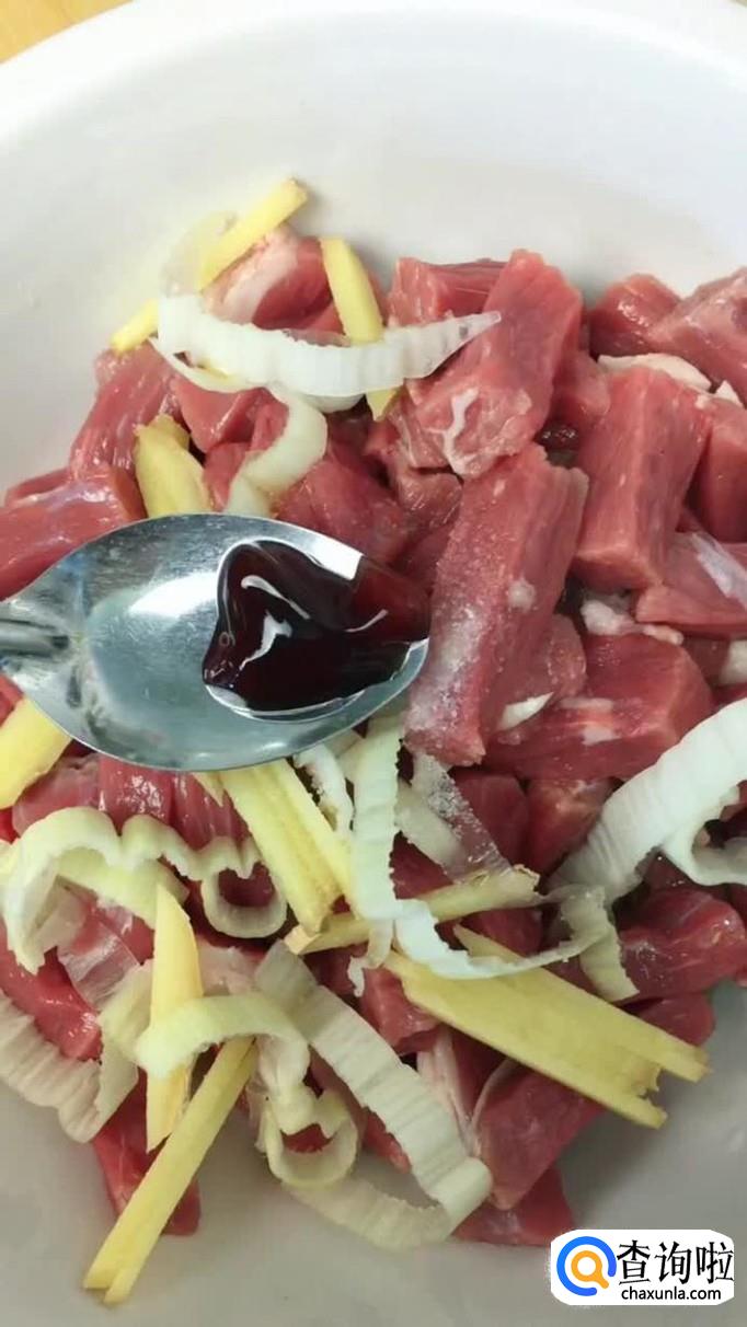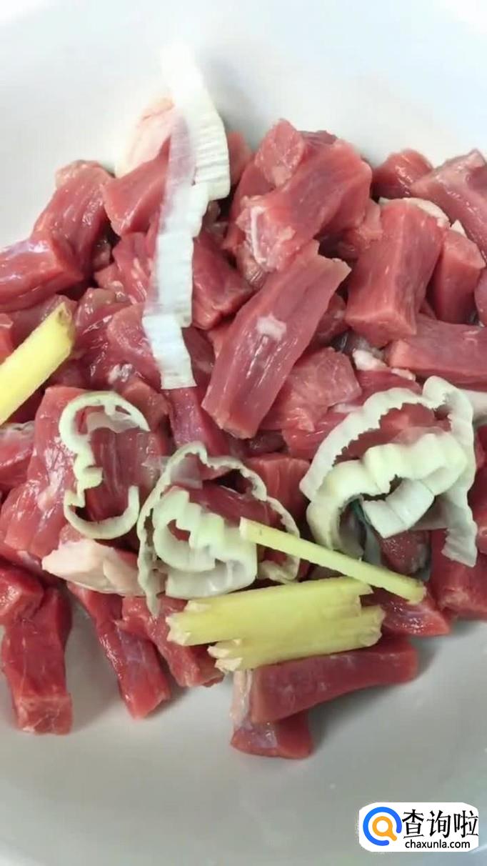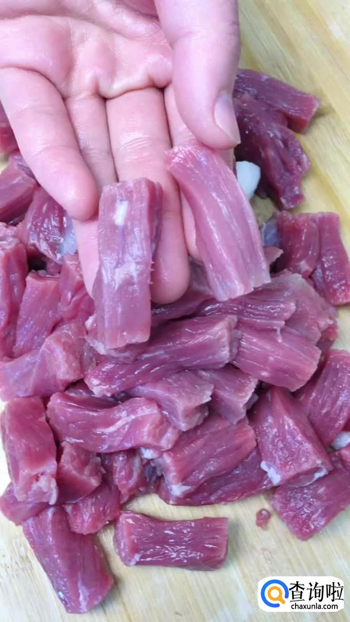 首先将买回来的牛肉洗干净,切成长条状,如下图所示。小贴士:关于牛肉的选择,小编建议大家最好选择黄牛肉会比较好。